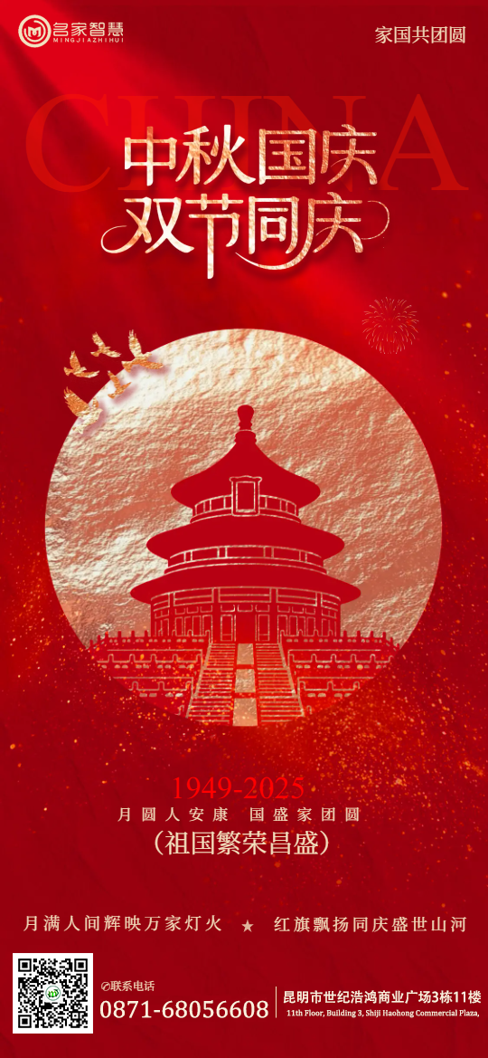双节齐至,家国同庆!云南名家智慧科技有限公司恭祝大家国庆安康、中秋喜乐,愿与您并肩,共赏盛世华章!